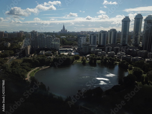 © sergey, Obraz premium Panorama copter Moscow sity view