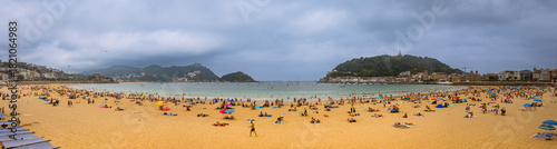 Naklejka premium Panorama de la Baie de la Concha de Saint-Sébastien sur la côte Basque en...