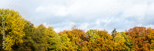 Fototapeta premium Panorama, deciduous trees and blue sky
