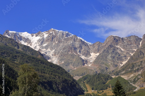 Fototapeta premium Panorama della parete Est del Monte Rosa con cielo azzurro e nuvola bianca