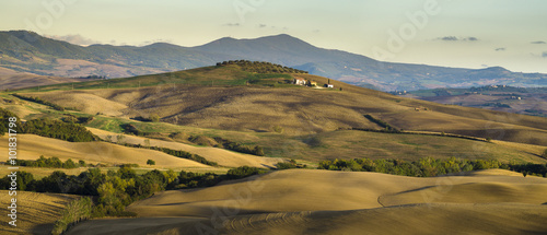 © Mike Mareen, Fototapeta premium Panorama doliny i pól w Toskanii