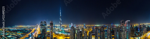 © Sergii Figurnyi, Obraz premium Panorama Dubaju nocą