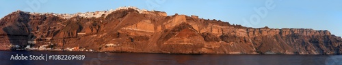 Obraz premium Panorama Felswand von Santorin, Fira, Griechenland, Küste, Steilküste, Fels, Gestein, vulkanisch, rot, Abendrot, Insel