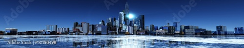 © ustas, Obraz premium Panorama festive city. City on the river.