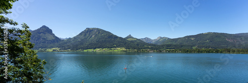 Naklejka premium Panorama from Landscape of Wolfgangsee lake with its surrounding mountains. Austria
