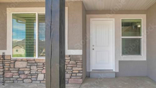 © Jason, Fototapeta premium Panorama Front door exterior of a house with gray and white color palette