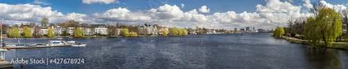 Fototapeta premium Panorama Hamburg Aussenalster im Vorfrühling sonnig