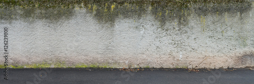 Fototapeta premium Panorama Hintergrund aus Mauer mit hellem Rauputz mit Algen und Boden aus...