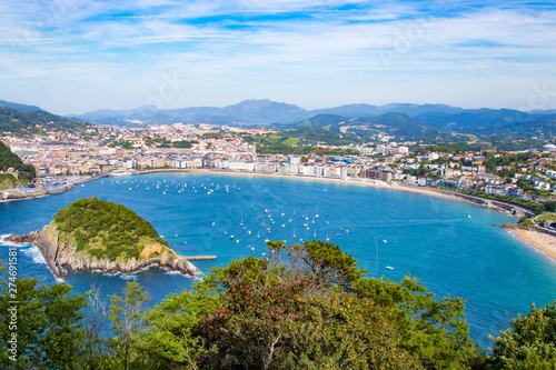 Obraz premium panorama i krajobraz plaży muszli w san sebastian, donostia, hiszpania