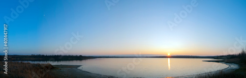 Fototapeta premium Panorama lake view in sunrise time /Sunrise at the lake