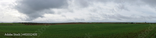 Obraz premium panorama landscape of endless olive groves and green farm fields