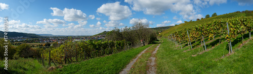 © Bernd Schmidt, Fototapeta premium Panorama Landschaft Weinberg mit Feldweg