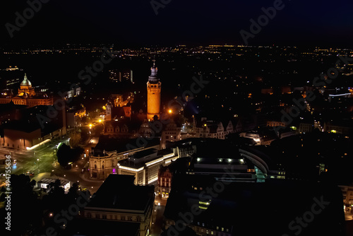 © zwiebackesser, Fototapeta premium Panorama Leipzig ( Saxony, Germany) at night. Horizontal image.