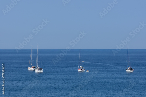 © Fabio Caironi, Fototapeta premium Panorama marino del Mar Ligure a Moneglia in provincia di Genova, Liguria, Italia.