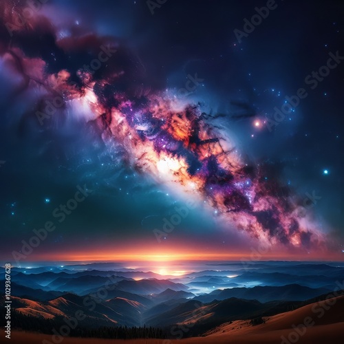 © hamza, Fototapeta premium Panorama milky way galaxy with stars and space dust in the universe
