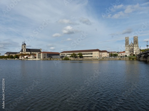 Obraz premium Panorama mit Kirche St.-Martin, der ehemaligen Prämonstratenserabtei und Mosel in Pont-a-Mousson