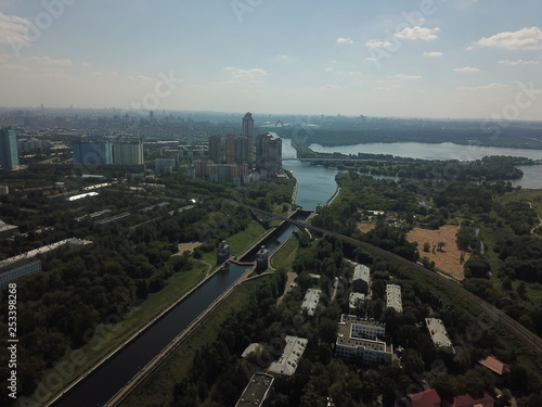 © sergey, Obraz premium Panorama moscow sky copter