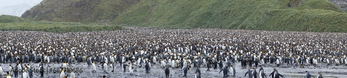 © Angela, Obraz premium Panorama of a king penguin (Aptenodytes patagonicus) colony at Salisbury Plain, South Georgia Island