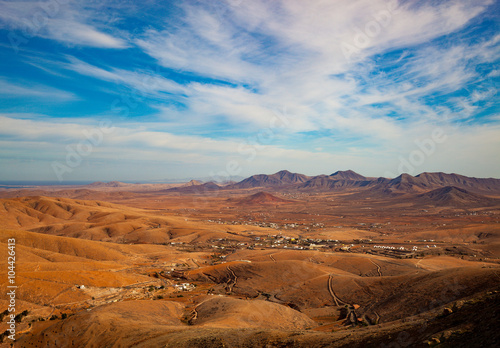 Naklejka premium Panorama of a volcanic landscape, Fuerteventura, Canary Islands, Spain