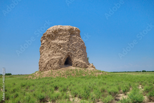 Naklejka premium Panorama of ancient Buddhist stupa Zurmala in Termez, Uzbekistan. Built in I-II AD. Originally was painted red. Current height is about 13.5 m