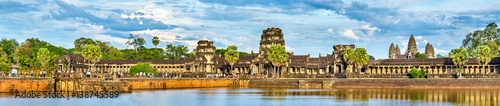 Obraz premium Panorama of Angkor Wat across the moat, a UNESCO world heritage site in Cambodia