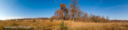 Fototapeta premium Panorama of autumn tree on a large lawn.