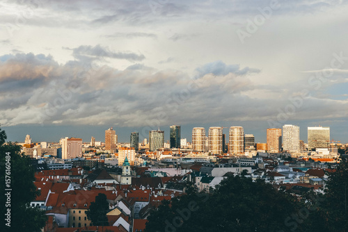 © Radoo, Naklejka premium panorama of bratislava after storm clouds at sunset