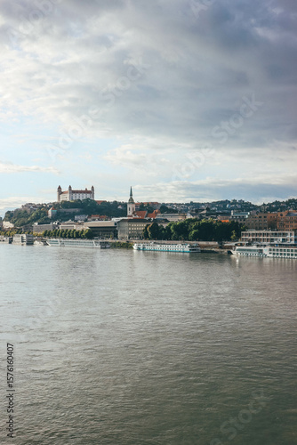 © Radoo, Naklejka premium panorama of bratislava after storm clouds during day with castle on top