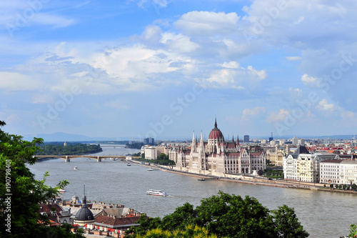 © Arseniy Krasnevsky, Obraz premium Panorama of Budapest city and parliament