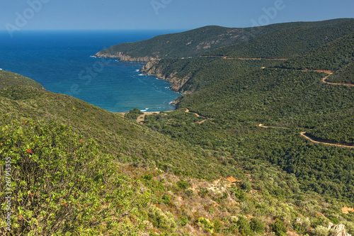 Fototapeta premium Panorama of coastline near Mamba Beach Ampelos at Sithonia peninsula,...