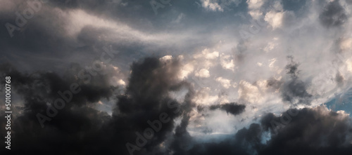 Fototapeta premium Panorama of dramatic cloudy overcast sky