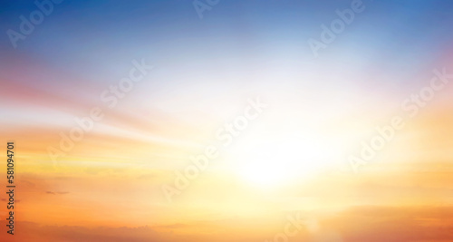 Fototapeta premium Panorama of dramatic sunset sky with a sunbeams
