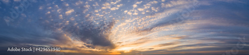© yelantsevv, Obraz premium Panorama of Dramatic vibrant color with beautiful cloud of sunrise and sunset. Panoramic image.