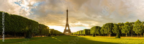 Fototapeta premium Panorama of Eiffel Tower in Paris during sunset, France