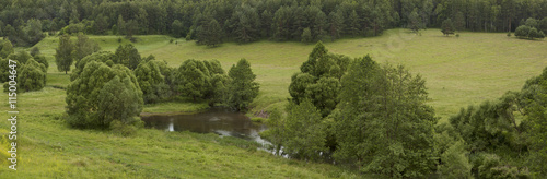 © Sergey Pankin, Fototapeta premium Panorama of forest river in the summer.
