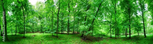 Obraz premium Panorama of green forest at spring landscape