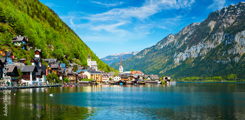 Fototapeta premium Panorama of Hallstatt village and Hallstatter See, Austria