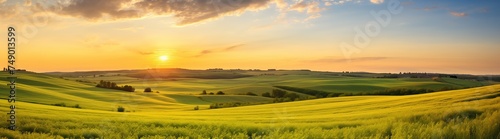 © alesia0604, Obraz premium Panorama of idyllic rural landscape sunset. Horizontal banner, header for website