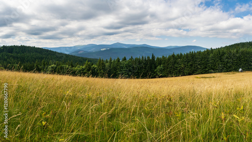 Naklejka premium Panorama of Krkonoše mountains during the summer