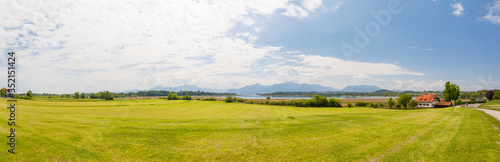 Fototapeta premium Panorama of lake Chiemsee with alps in background