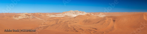 © Africa2008, Naklejka premium panorama of mountain in between dunes with blue sky at sossuvlei national park in Namibia, stunning wallpaper