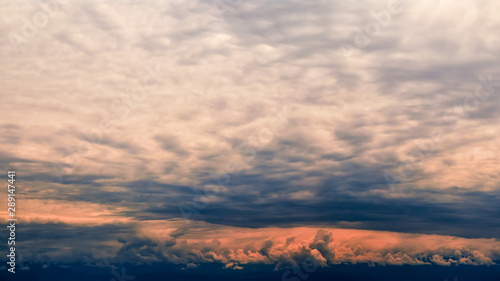 Fototapeta premium Panorama of mountains and dramatic sky sunrise, autumn sunset, background.