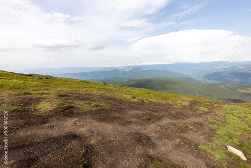 Fototapeta premium Panorama of mountains in the Ukrainian Carpathians on a summer day.