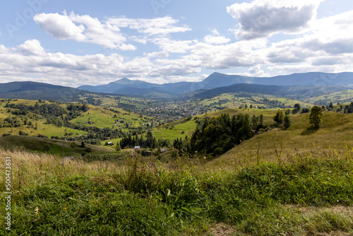 Fototapeta premium Panorama of mountains in the Ukrainian Carpathians on a summer day.