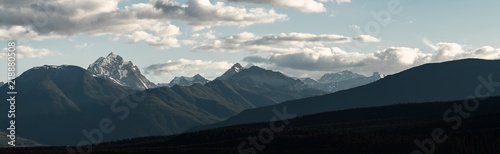 Fototapeta premium Panorama of Mt Delphine at dusk in the Purcell Mountain range, Canada