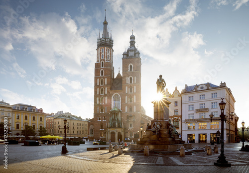 © Mikolaj Niemczewski, Fototapeta premium Panorama of old city center with Adam Mickiewicz monument and St