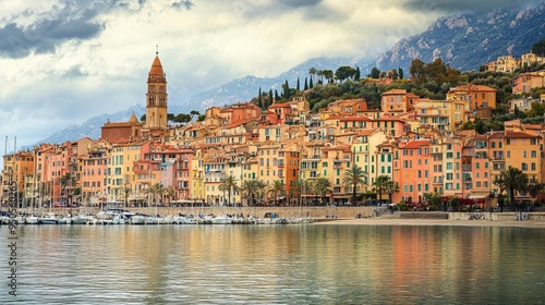 © Kanan, Fototapeta premium Panorama of old town Menton, France