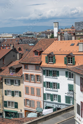 Fototapeta premium Panorama of old town of city of Lausanne, Switzerland