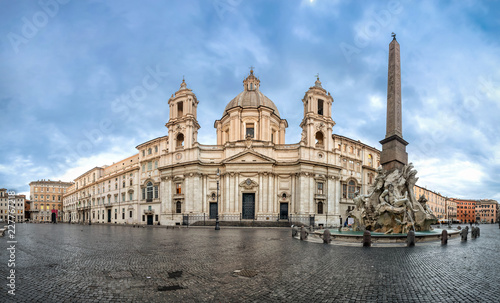 Naklejka premium Panorama of Piazza Navona square with Fontana dei Fiumi fountain and Sant'Agnese in Agone church, Rome, Italy