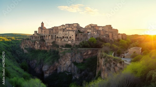 © Dhriti, Fototapeta premium Panorama of Pitigliano town in Tuscany, Italy, Generative AI